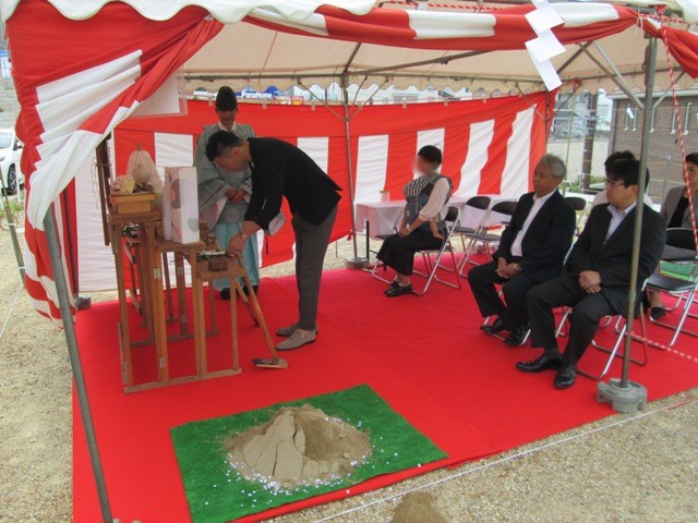 お天気に恵まれ無事、地鎮祭を執り行いました。おめでとうございます。